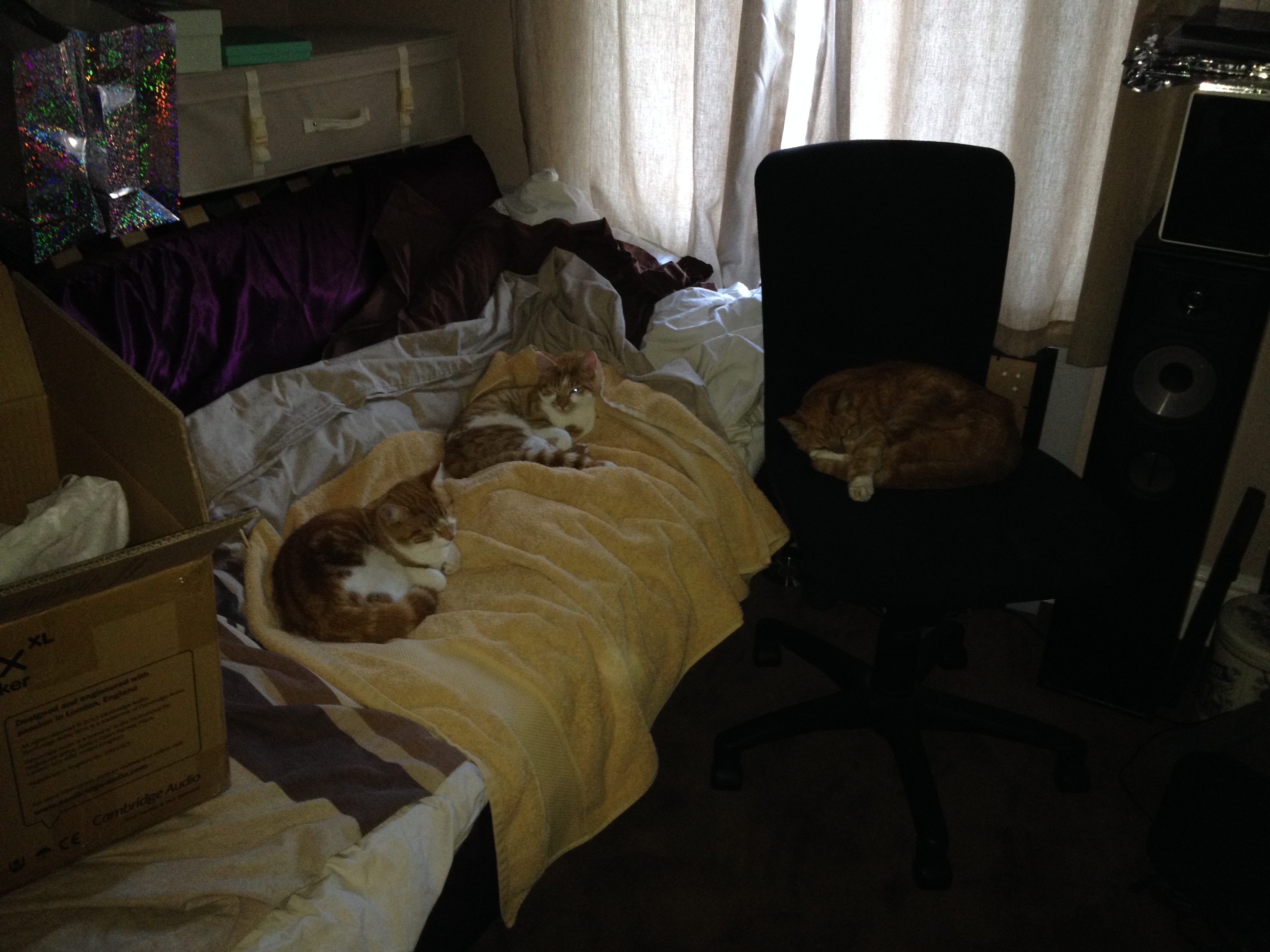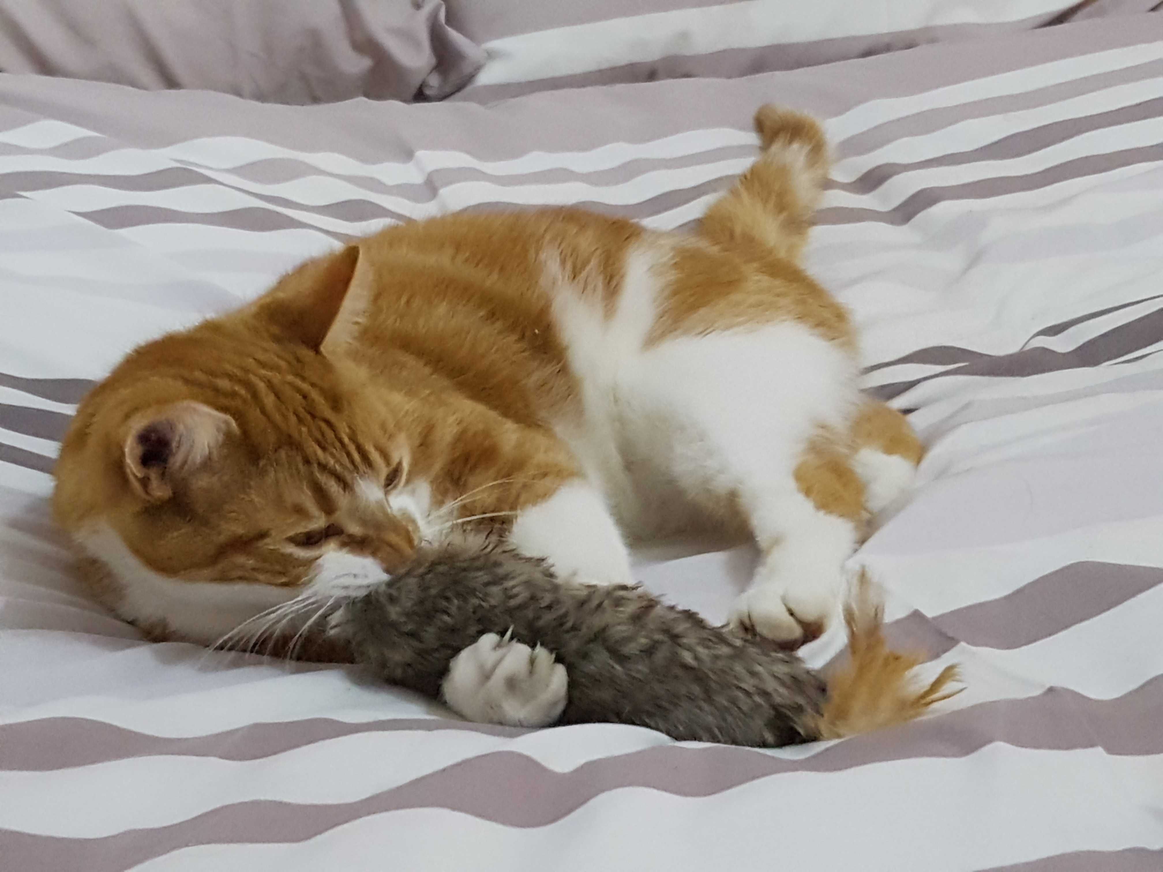 Priya and Raj continued on - although Priya was a bit too fearless, and she got hit by cars on at least three occasions. The first time, she was just in shock, and recovered on the way to the emergency vet. The second time she had to have her tail amputated (the collar didn't stop her escaping through the cat flap one day). The third time was the end, and she died late January the year after Kif died.