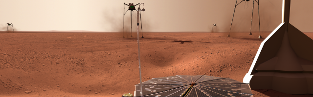 When NASA released the pictures taken from the Phoenix Lander, I couldn't resist superimposing some Martians on it.